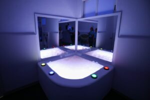 Asimismo cuenta con alberca sensorial, espejos con tubo de burbujas, panel de aromaterapia integral, cama de agua, panel de texturas, panel de entrenamiento táctil, alberca de pelotas, pared de escalada, panel de actividades mixtas, cama elástica, pasillo de texturas y columpio hamaca vestibular.