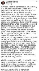 “Al chico que me ayudó, no sé quién eres, pero te agradezco muchísimo que me protegieras. Si no estuvieras en el lugar, probablemente la historia sería otra”, finalizó la mujer.