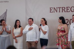 La Presidenta Sheinbaum y Joaquín Díaz Mena entregan apoyos de “La Escuela es Nuestra” en Izamal