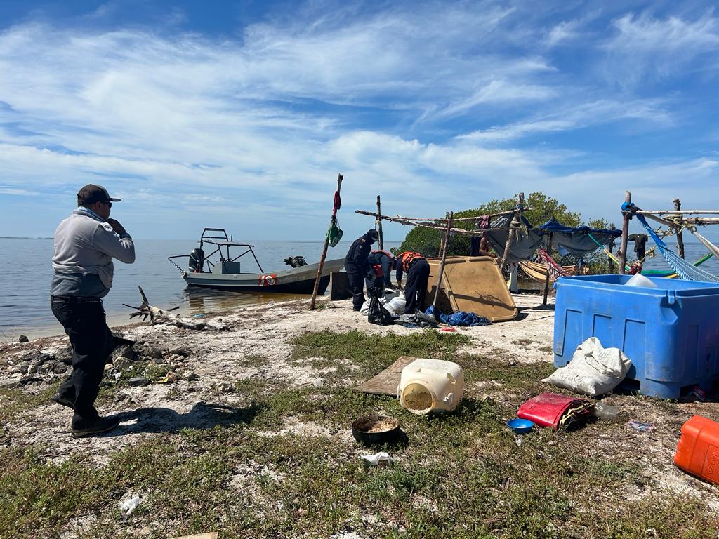 Durante el recorrido marítimo de inspección y vigilancia en materia de pesca, autoridades federales vieron en el Área Natural Protegida “Los Petenes” un campamento. En ese lugar encontraron dos neveras grandes.