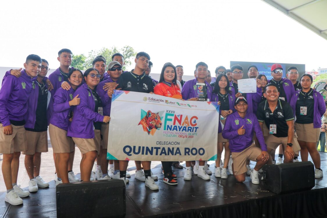 Bahía de Banderas, Nayarit.- El Colegio de Estudios Científicos y Tecnológicos del Estado de Quintana Roo (CECyTE Quintana Roo) tuvo una extraordinaria y memorable participación en el Festival Nacional de Arte y Cultura CECyTE 2025, celebrado en Bahía de Banderas, Nayarit, al lograr premios en tres disciplinas distintas por primera vez en su trayectoria.