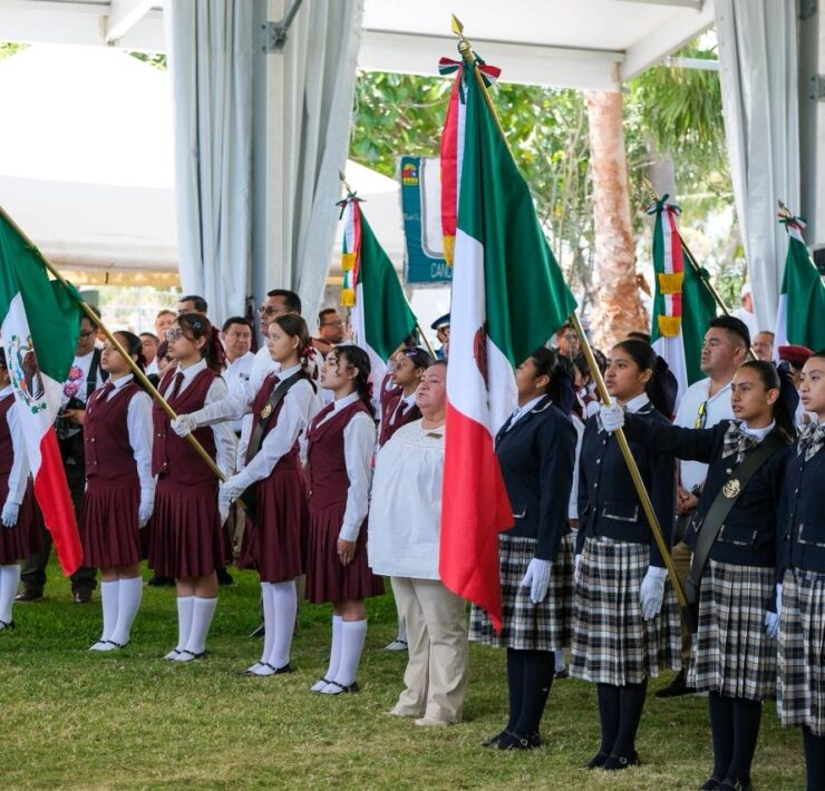 En el presídium también estuvieron Verónica Lezama Espinosa, presidenta honoraria del Sistema DIF Quintana Roo; Eugenio Fernández García; presidente de la Asociación de Padres de Familia; el diputado Jorge Arturo Sanén Cervantes; Luis Alberto Tun Calderón, subsecretario de Educación en Quintana Roo en la Zona Norte; Francisco Alejandro Carrillo Flores, subsecretario Social e Interinstitucional en la Zona Norte; Irma Xóchitl Cervantes Buenfil, directora de la técnica 35 “José Guadalupe Posada”, y los estudiantes Flor Kú Canché y José Alberto.