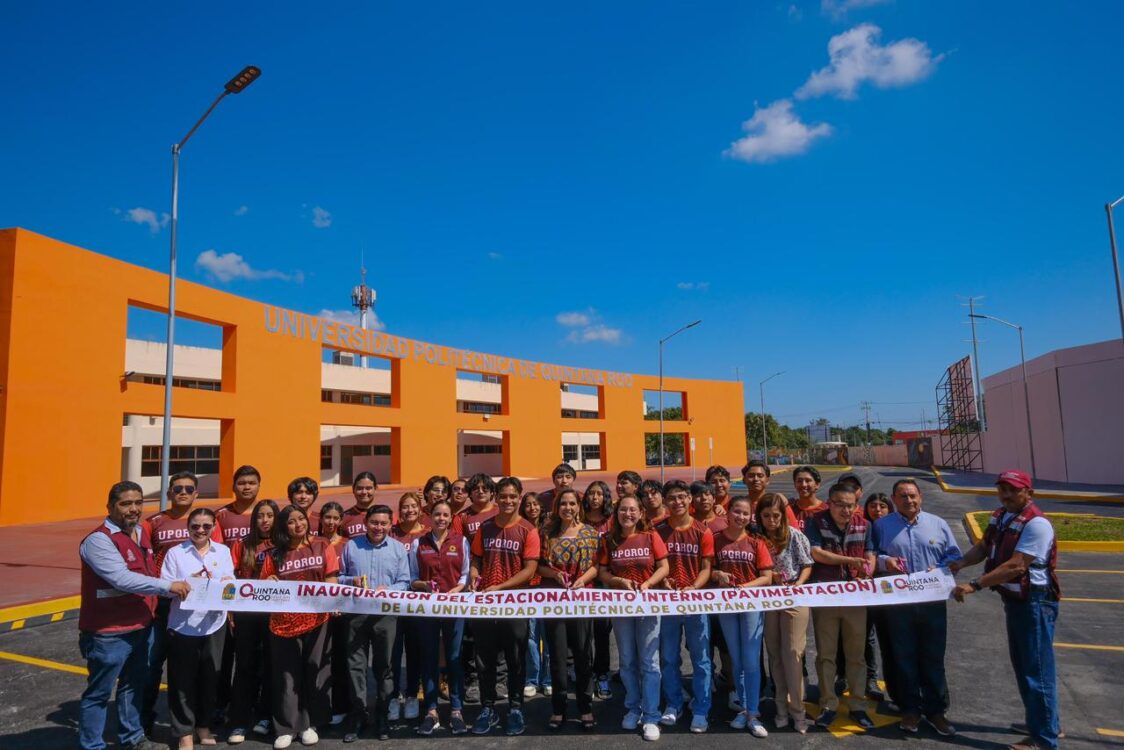 Cancún.– En cumplimiento a un compromiso asumido directamente con la comunidad estudiantil, la gobernadora Mara Lezama Espinosa inauguró la pavimentación del estacionamiento interno de la Universidad Politécnica de Quintana Roo, en el municipio de Benito Juárez, obra que representó una inversión de 3.6 millones de pesos.
