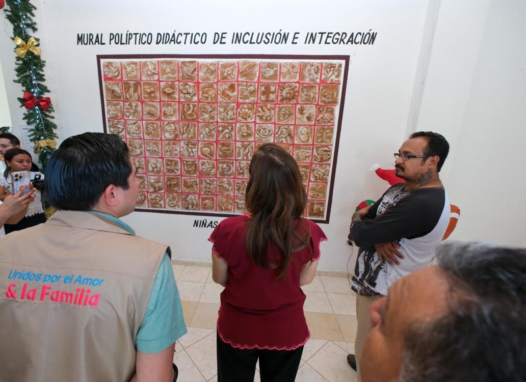 José María Morelos.- Como parte de las actividades conmemorativas del Día Internacional de las Personas con Discapacidad, la gobernadora Mara Lezama Espinosa inauguró un mural políptico didáctico de inclusión e integración en las instalaciones del DIF Municipal de José María Morelos, obra realizada por niñas y niños del Centro de Atención Múltiple (CAM) y de la Unidad de Servicios de Apoyo a la Educación Regular (USAER).