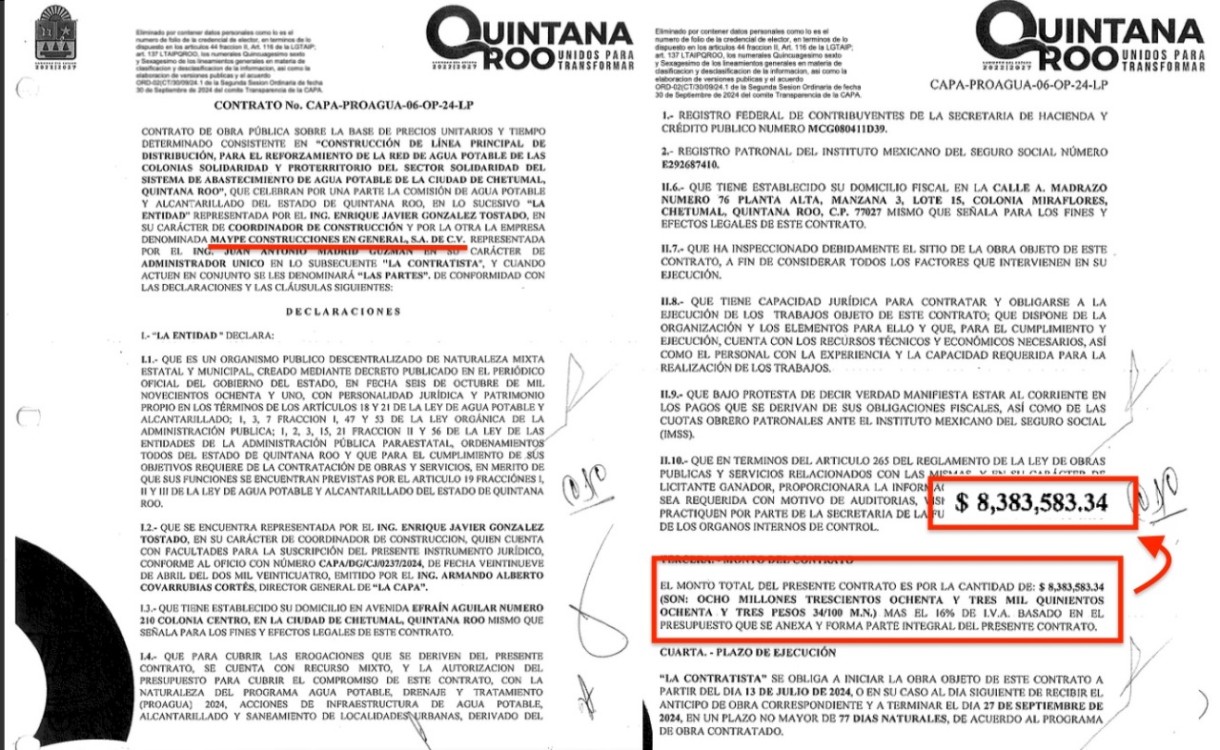 El pasado 9 de junio de 2024, MAYPE firmó el contrato CAPA-PROAGUA-05-OP-23-LP por un monto de $4,799,660.37 pesos para la ampliación y mejoramiento del sistema de abastecimiento de agua potable en la localidad de Pozo Pirata, Municipio de José María Morelos, Quintana Roo.