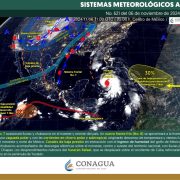 A esta situación se suma un canal de baja presión sobre la Mesa del Norte y la Mesa Central, que junto con el ingreso de aire húmedo del Pacífico y el Golfo de México, propiciará precipitaciones significativas en el Estado de México, Querétaro, Guanajuato y Jalisco, así como lluvias fuertes en Veracruz, Oaxaca, Puebla, Tlaxcala, Morelos, Ciudad de México, Hidalgo, Colima, Aguascalientes y Zacatecas.