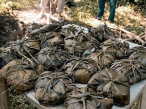 Se dice que el calor del horno subterráneo “quema” el espíritu del difunto recién enterrado. Por eso, los familiares deben esperar hasta el siguiente año para elaborarlo.