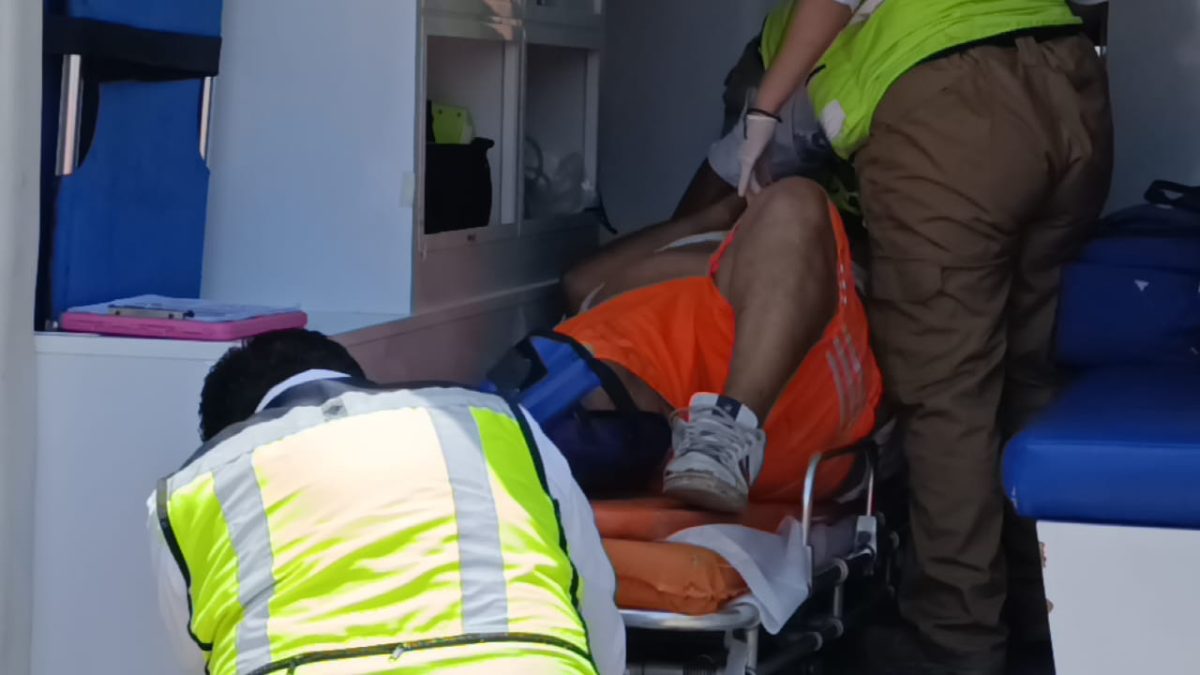 El hombre lesionado tuvo que ser inmovilizado de la pierna derecha y fue subido a una ambulancia para ser enviado a un hospital. Mientras el guiador del automóvil diálogo con los policías para contar su versión de los hechos.