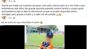 Mujer pierde a su esposo e hijo en trágico suceso, justo después de que padre e hijo brillaran como parte de la Liga Pequeña de Béisbol Linares A.C., institución que expresó sus condolencias:
