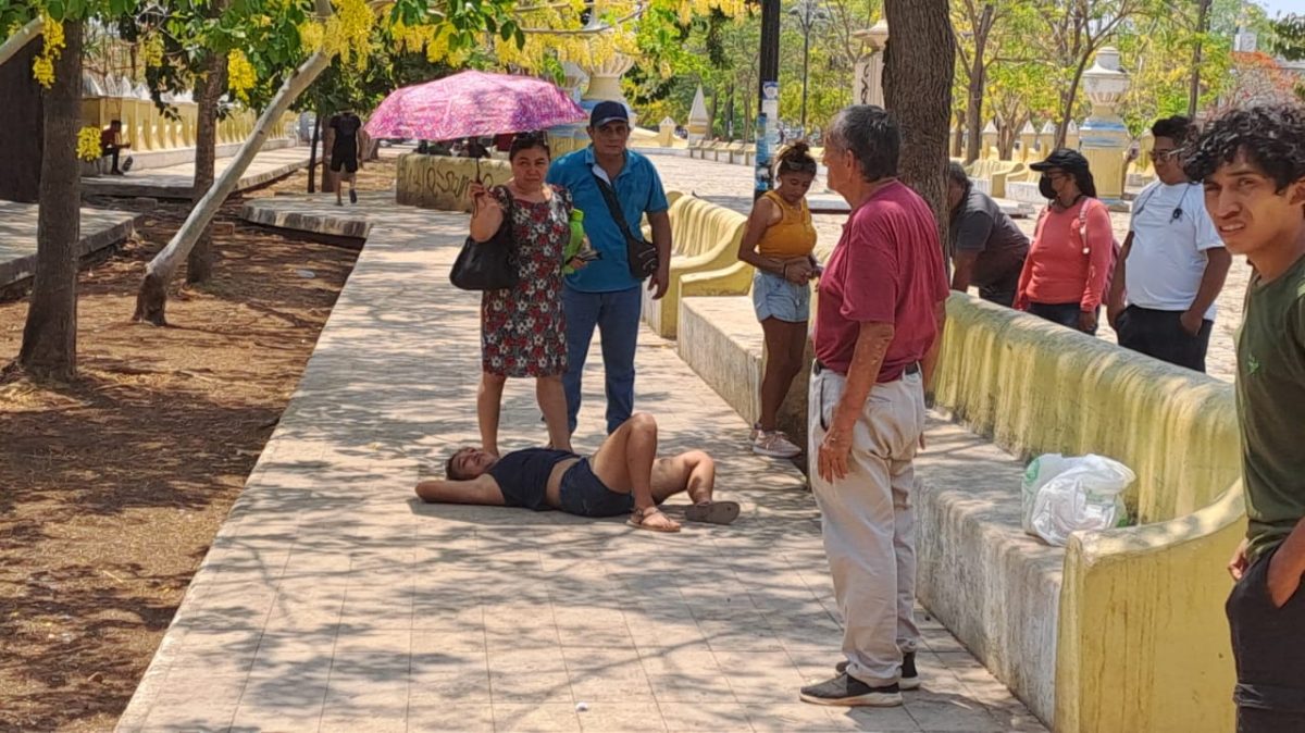 Mujer terminó desmayada en la Alameda de la capital de Campeche, alarmando a ciudadanos quienes le brindaron ayuda y pidieron una ambulancia.