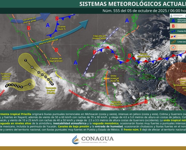 Huracán Priscilla y onda tropical 36 ponen en alerta a más de 20 estados del país