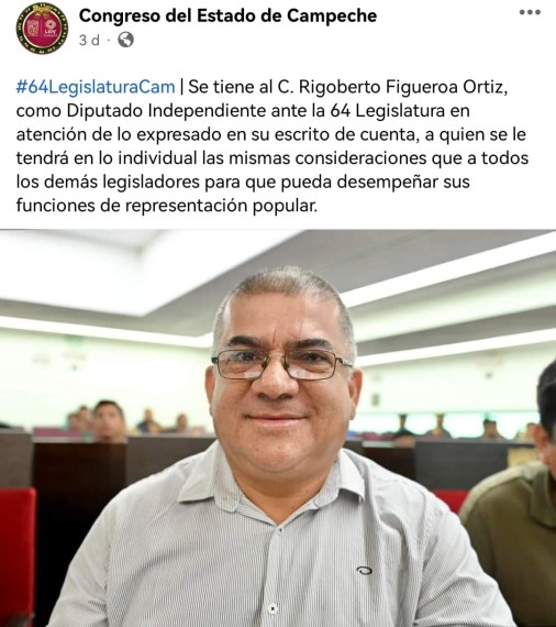 Rigoberto Figueroa Ortiz anunció su separación del grupo parlamentario del PRI en la LXIV Legislatura Local, presuntamente por falta de claridad.