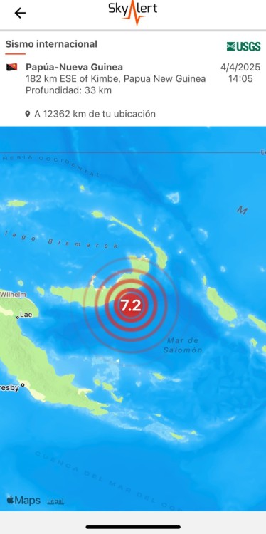 La Chispa les informa que se registró un fuerte terremoto de 7.2 de magnitud en Papúa Nueva Guinea estremeció la mañana del sábado la isla de Nueva Bretaña, generando una rápida respuesta por parte de las autoridades internacionales ante el riesgo de tsunami.