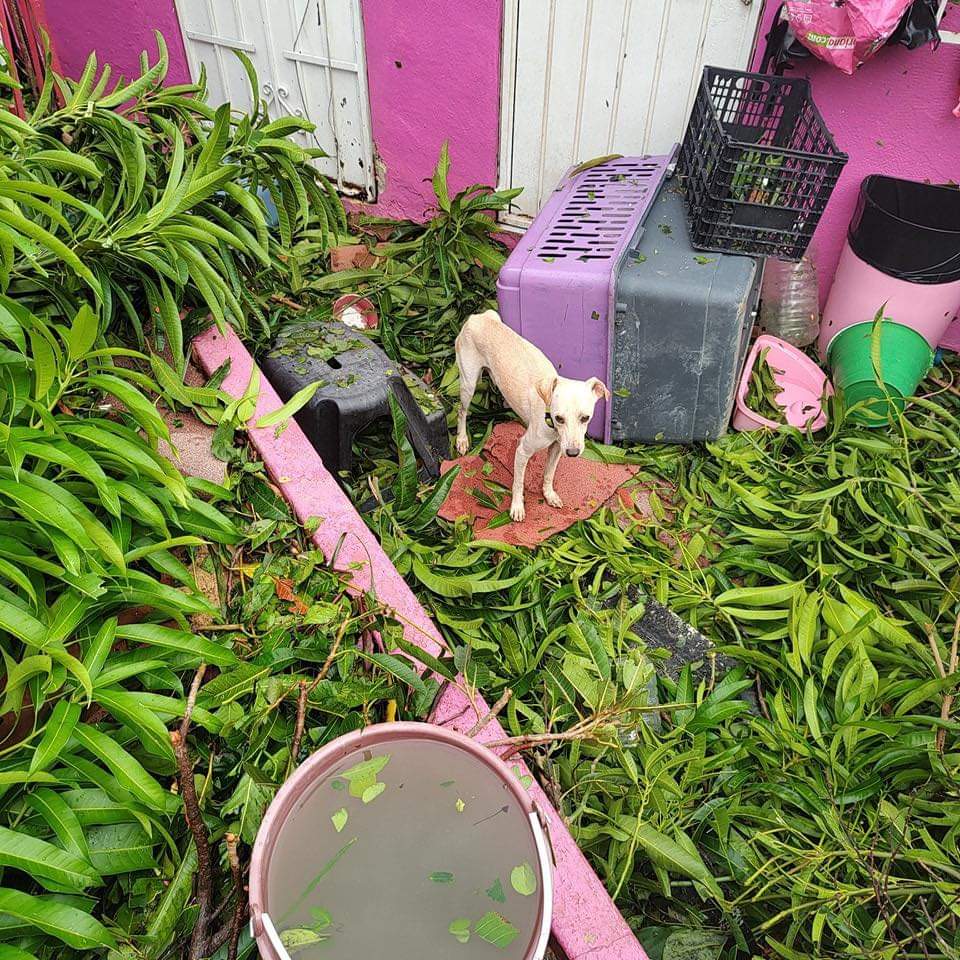 Tras el paso del huracán, este refugio experimentó daños significativos, dejando a los animales resguardados en una situación vulnerable.