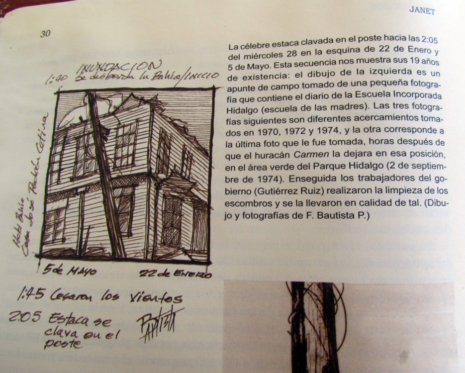 Janet tiene 69 años yo tengo 58 pero me platicaba mi mamá que había 25 personas aquí cuando el huracán la desprendió y la casa se fue flotando”.