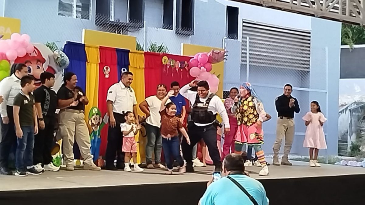 Policías de Campeche celebran con sus hijos el Día del Niño después de ser ignorados por la Gobernadora Layda Sansores en el festival que hizo.