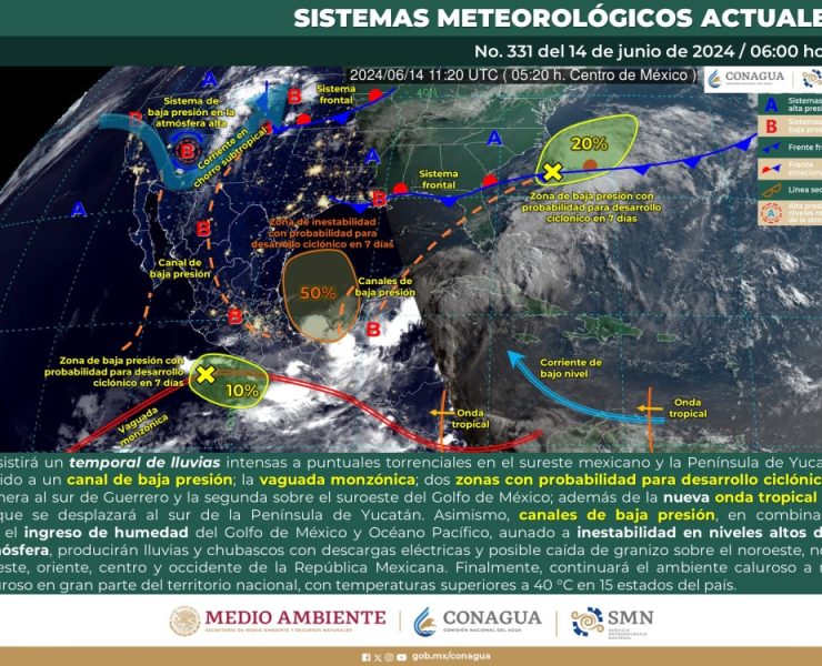 El SMN prevé temporal de lluvias intensas a torrenciales en Yucatán