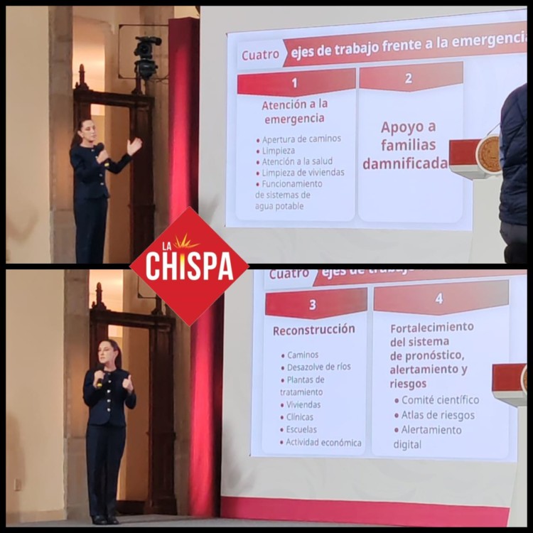 “Estimamos que serán alrededor de 100 mil familias damnificadas. Algunas perdieron completamente la vivienda y otras tienen afectaciones menores, pero vamos a apoyar a todas. La primera estimación son 10 mil millones de pesos de apoyo directo a las personas, a la reconstrucción de escuelas, clínicas y empleos, construyendo futuro”, afirmó la mandataria.