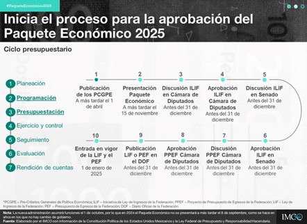 Ante la importancia de este documento, cuya entrega al Congreso marca el inicio del proceso que culminará con la aprobación de la primera Ley de Ingresos de la Federación (LIF) y el primer Presupuesto de Egresos de la Federación (PEF) de la administración que tome posesión el próximo 1 de octubre, el Instituto Mexicano para la Competitividad (IMCO) analizó sus principales componentes: 1) el marco macroeconómico estimado para 2025, 2) el comportamiento esperado de las finanzas públicas y 3) los montos “deseables” para el siguiente ejercicio fiscal de los principales programas presupuestarios de la actual administración.
