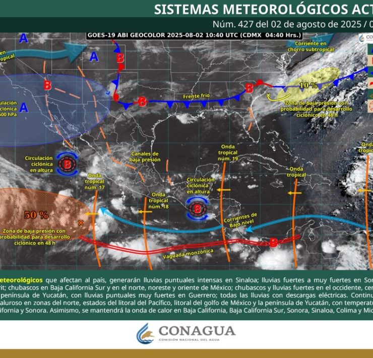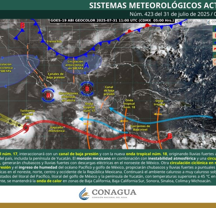 El Potencial Ciclón Tropical Nueve traerá consigo un aumento de lluvias y vientos fuertes en diversas zonas de Quintana Roo. Según los expertos en meteorología, este sistema podría intensificarse en las próximas horas, afectando el estado con tormentas tropicales que incluyen actividad eléctrica y ráfagas de viento, principalmente en las zonas costeras. La recomendación de La Chispa es estar atento a los reportes de seguridad y a los posibles cambios en el Importante Aviso sobre el Servicio de Rutas Marítimas, que podrían verse alteradas por estas condiciones climáticas.