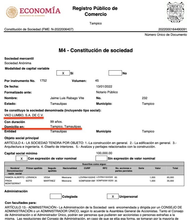 VKO LUMBO SA de CV, de Tampico, Tamaulipas, que firmó el contrato LOPN-IFEQROO-FAM-008-2024 para construcción de la secundaria de nueva creación, Fraccionamiento Aldea Tulum, en el municipio de Tulum, por un monto de $7,268,170.74 pesos.