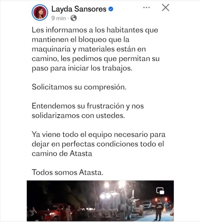 La Secretaría de la Defensa Nacional (Sedena) tuvo que entrar de manera urgente enviado vehículos de carga pesada para atender las carreteras en mal estado en la vía del poblado Atasta, Carmen, lo que permitió la liberación tras 20 horas de bloqueo de la carretera Frontera-Carmen, informó el Presidente de la Junta de Gobierno y Administración del Congreso del Estado, Antonio Jiménez Gutiérrez.