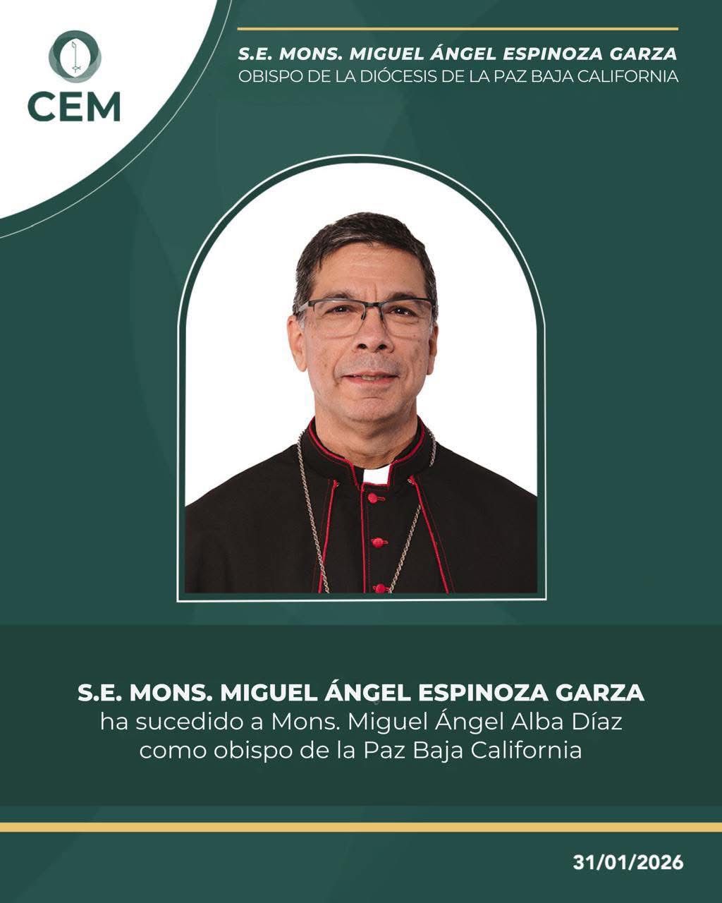 Con esta decisión, el Vaticano determinó que el nuevo obispo de La Paz sea monseñor Miguel Ángel Espinoza Garza, quien hasta ahora se desempeñaba como obispo coadjutor de la misma diócesis. Su nombramiento garantiza una transición ordenada y de continuidad, al tratarse de un prelado que ya conocía la realidad pastoral, social y eclesial de la región.