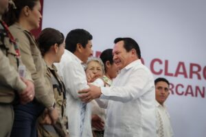 También destacó que su gobierno escucha a las mujeres y reconoce sus historias a través del programa Mujeres Renacimiento, con el cual se brinda a las madres autónomas un apoyo económico que en enero de 2026 aumentará a tres mil pesos bimestrales; y que, junto con el Gobierno de México, se pusieron en marcha 31 Centros Libre, espacios seguros y cercanos donde las yucatecas reciben atención psicológica, jurídica y social.