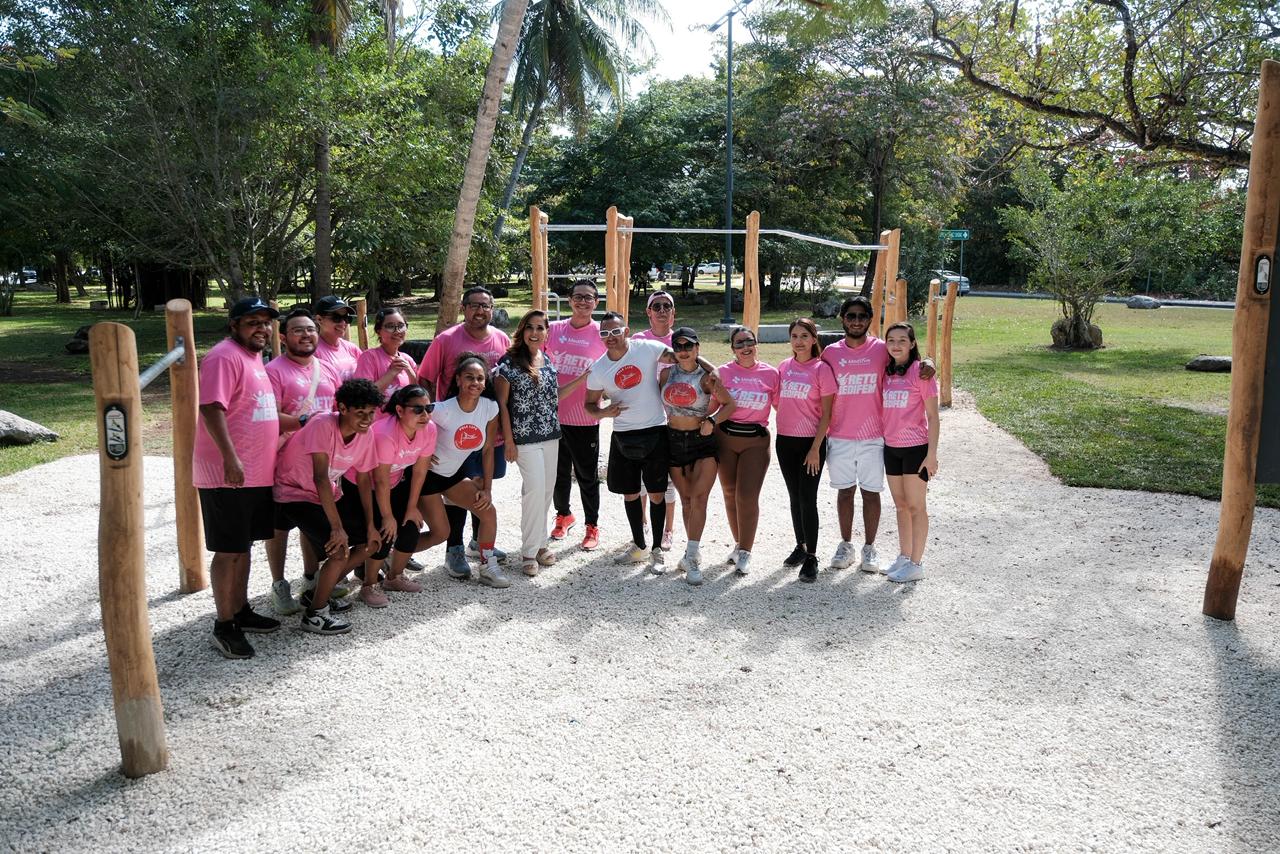 El espacio, ubicado en el camellón central frente a la fuente Kukulkán, en el llamado Kilómetro 0 de la zona hotelera de Cancún, cuenta ahora con pasamanos, barras, equipos elípticos y estaciones de ejercicio, todo con código QR que, al escanearlos, los usuarios pueden acceder a rutinas específicas y conocer qué músculos se trabajan en cada aparato.