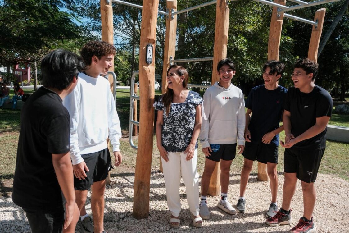 Cancún.– El gimnasio al aire libre ubicado en el Kilómetro 0 del Bulevar Kukulkán, en la zona hotelera, fue renovado en su totalidad con nuevos aparatos diseñados para resistir la corrosión del ambiente marino, informó la gobernadora Mara Lezama durante un recorrido por el lugar.