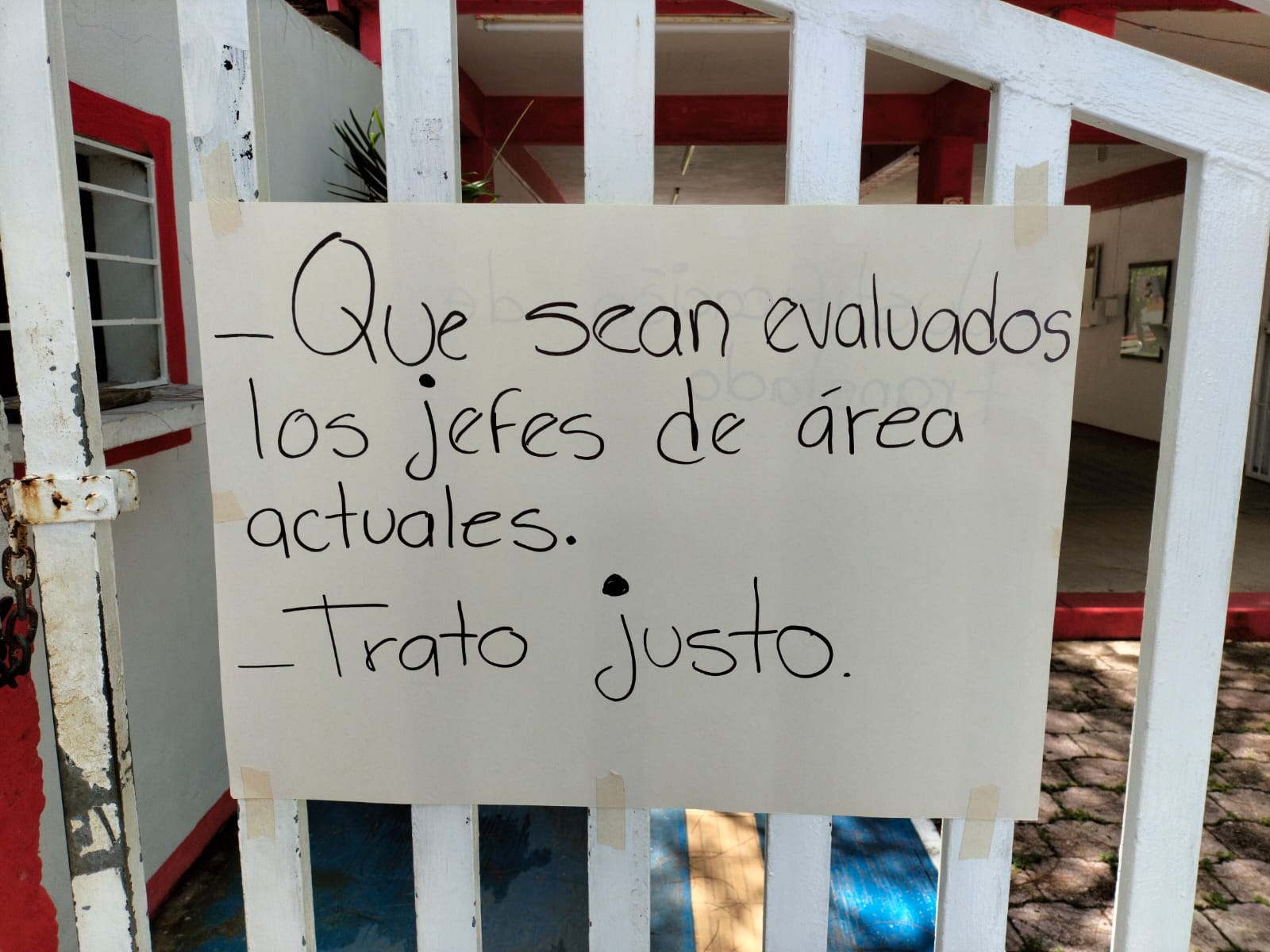 Se manifiestan trabajadores del Centro de Capacitación para el Trabajo Industrial número 50 (CECATI 50) de Ciudad del Carmen, el día de hoy por la mañana a fuera del plantel que se encuentra en la zona de Playa Norte, por desacuerdo al nombramiento de encargada de dirección que le dieron a la profesora Luz María Peralta Castellanos, de quien señalan han tenido una mala experiencia, además, piden apertura de plazas, basificaciones de plazas, equipamiento de los talles y justificaciones de los traslados médicos.