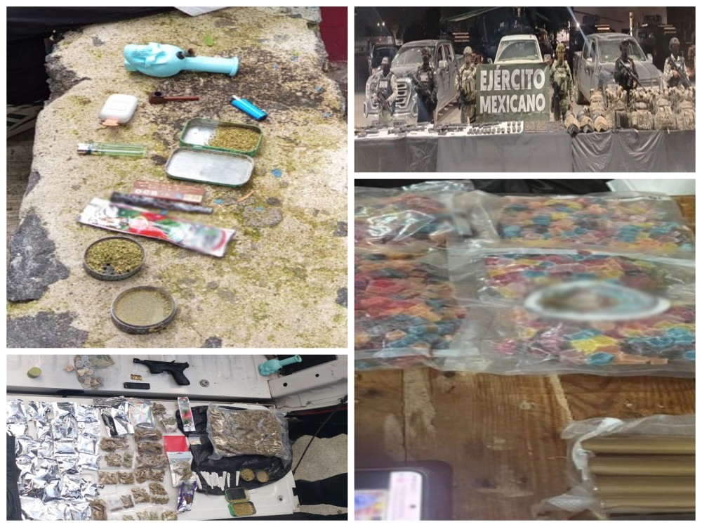 La frontera norte continúa siendo un foco estratégico. En Tijuana, Baja California, fuerzas federales realizaron cateos simultáneos que derivaron en la detención de seis presuntos delincuentes, el aseguramiento de armas, vehículos y droga valuada en más de 7.6 millones de pesos, incluyendo un kilogramo de fentanilo y 250 gramos de metanfetamina.