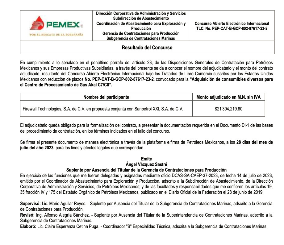 Así mismo se confirma que, Sergio Ayala asumirá el cargo hasta que la actual Dirección General de Pemex presente en total orden su documentación y reportes en lo que refiere al proceso de entrega-recepción de parte del equipo de Romero Oropeza, se lee en la misisva.