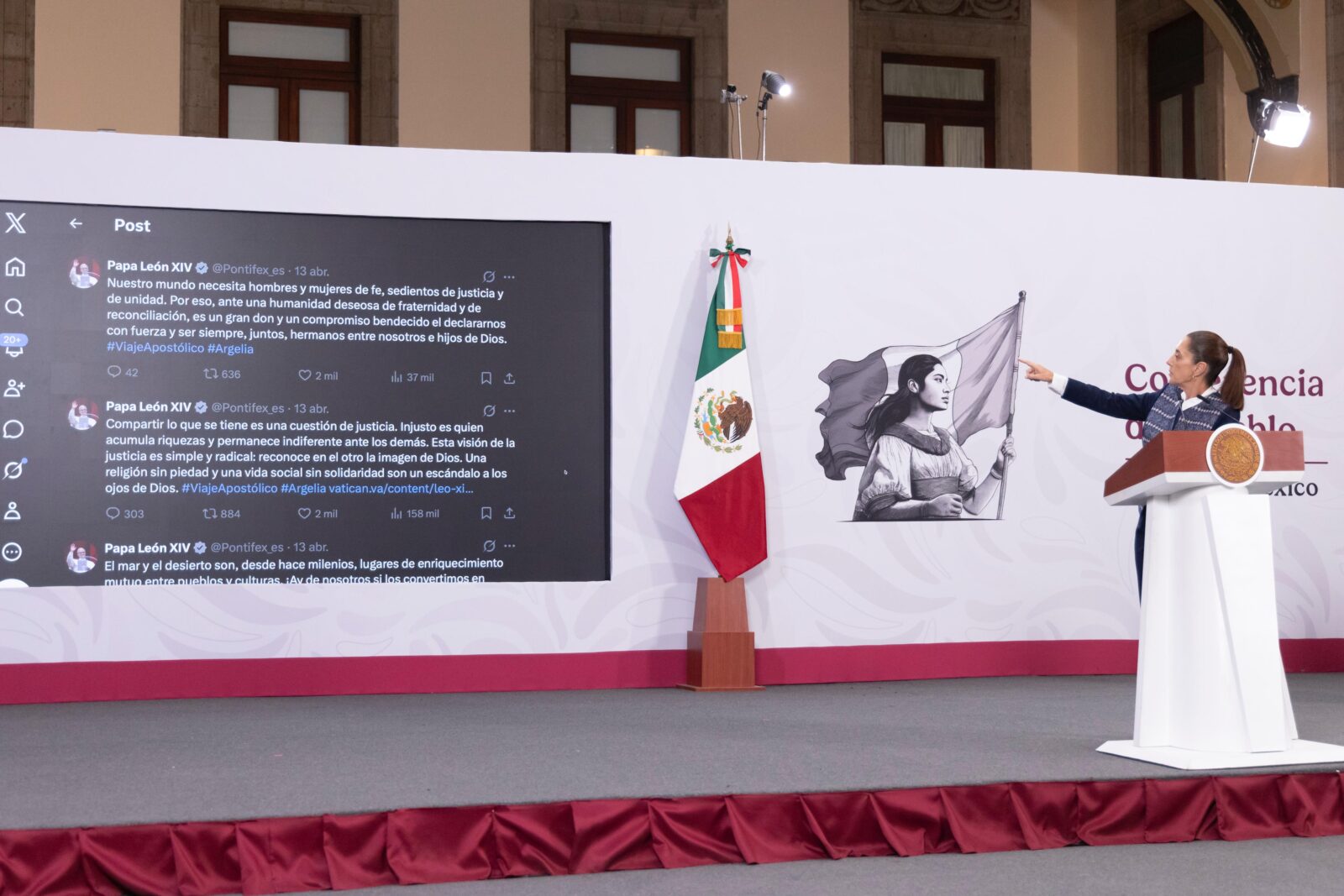 La presidenta Claudia Sheinbaum Pardo resaltó el reciente mensaje del Papa León XIV, al destacar que la justicia social y la solidaridad deben ser ejes centrales tanto en la vida pública como en la convivencia internacional.