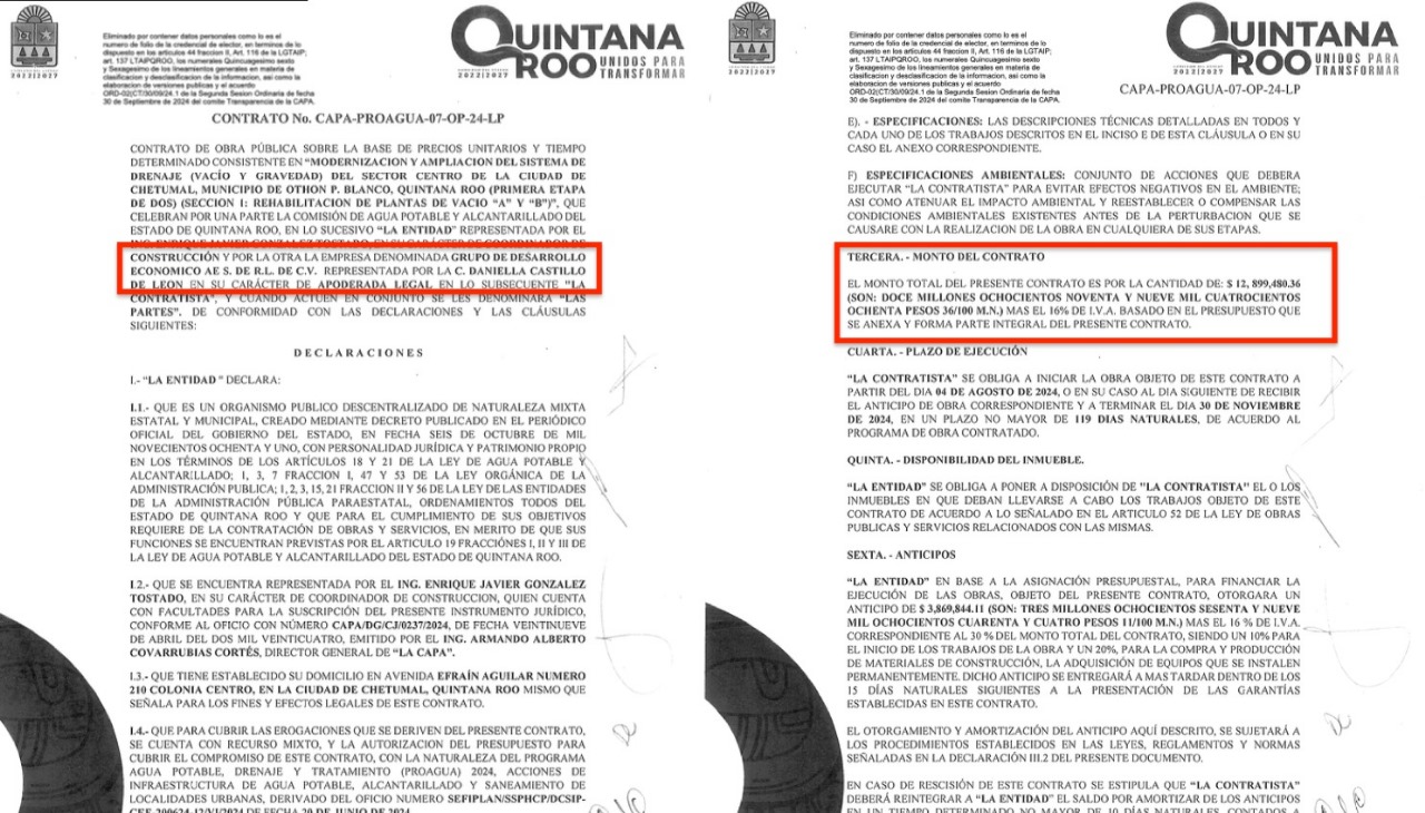 Por último, el 3 de agosto la empresa Grupo de Desarrollo Económico AE, a través de su apoderada legal, Daniella Castillo de León, firmó el contrato CAPA-PROAGUA-07-OP-24-LP por la suma total de $14.9 millones de pesos.