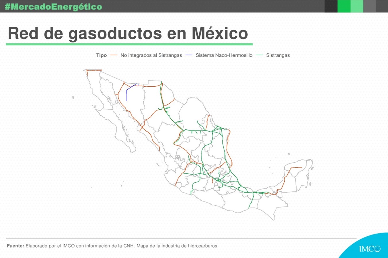 México tiene el potencial de ser uno de los principales beneficiarios de la relocalización de las cadenas globales de valor, conocida como nearshoring. Sin embargo, para aprovechar esta oportunidad, el país requiere infraestructura energética competitiva. El país no cuenta con una red de gasoductos que permita llevar este combustible a todo el territorio nacional y detonar el crecimiento de industrias. Por ello, el Instituto Mexicano para la Competitividad (IMCO) analizó la red de gasoductos en el país, para responder preguntas como: ¿Qué infraestructura de transporte hace falta en México? ¿Qué proyectos se encuentran activos actualmente? ¿Qué entidades carecen de suministro? Con ello desarrolló propuestas de política pública para facilitar el desarrollo de infraestructura de transporte de gas natural.