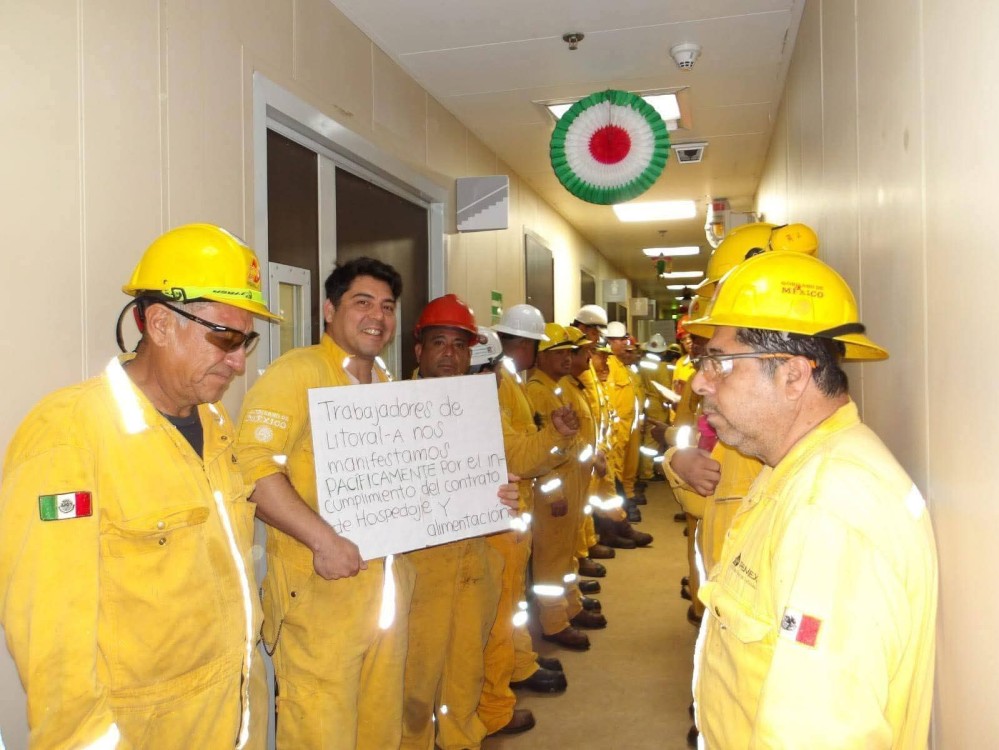 La protesta se ha replicado en varias plataformas desde febrero de 2025, incluyendo Pol-A del complejo Pol-Chuc, Nohoch-A en Cantarell y Abkatún, donde la precariedad se repite como un guion aprendido.