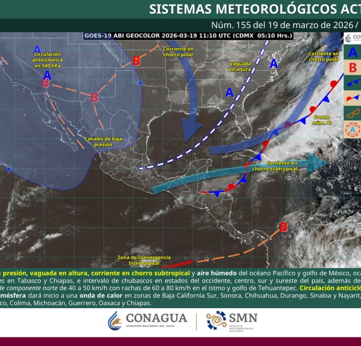 La masa de aire frío que impulsa al sistema frontal, continuará propiciando ambiente fresco a templado durante la tarde en las entidades de la Mesa del Norte y Mesa Central, además del noreste, oriente y sureste mexicano; propiciando evento de “Norte” fuerte a muy fuerte con rachas de viento de 70 a 90 km/h en costas de Veracruz, Istmo y Golfo de Tehuantepec y oleaje de 2 a 4 metros de altura en costas de Veracruz, siendo de menor intensidad para la Península de Yucatán.