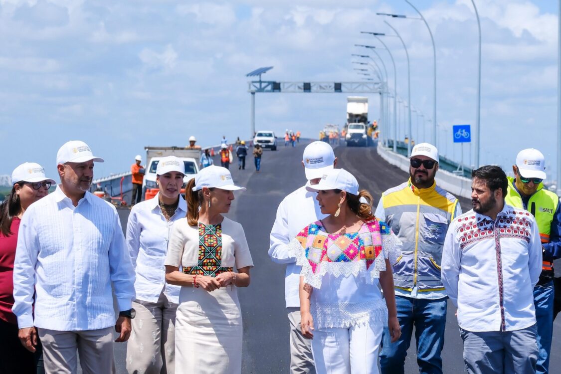 Supervisan Claudia Sheinbaum y Mara Lezama avances finales del puente Nichupté en Cancún