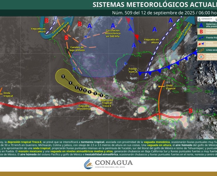 La depresión tropical Trece-E podría convertirse hoy en tormenta tropical frente a las costas de…
