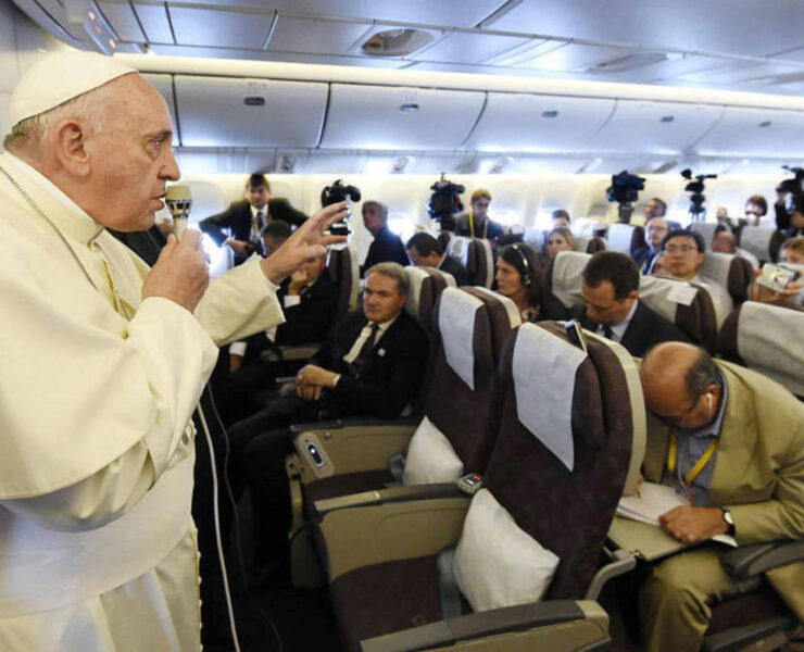 Durante la conversación tradicional con periodistas en el avión papal, tras concluir su visita a…