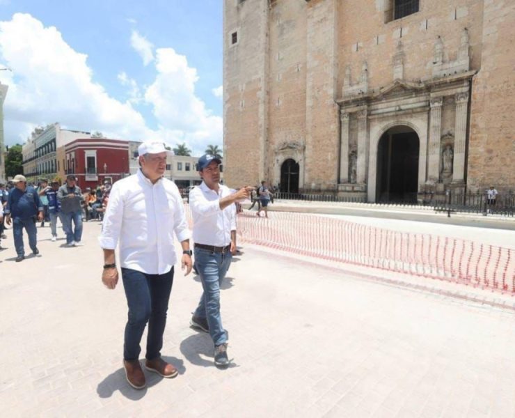 Las obras de la Plaza Grande de Mérida son supervisadas por el Gobernador del Estado…