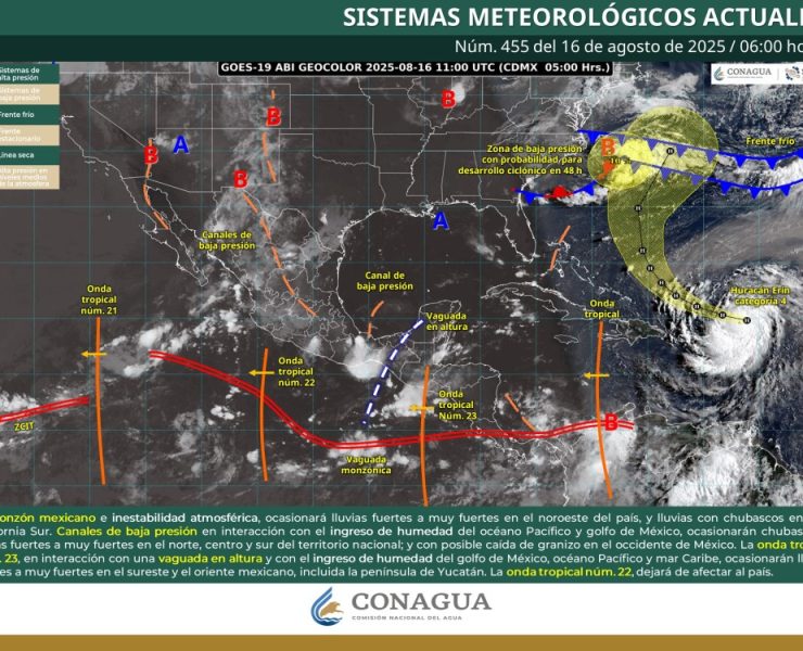 Este día, el monzón mexicano e inestabilidad atmosférica mantendrán condiciones para originar chubascos y lluvias fuertes en la…