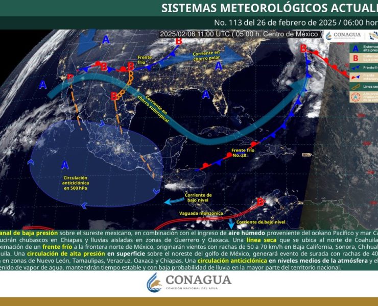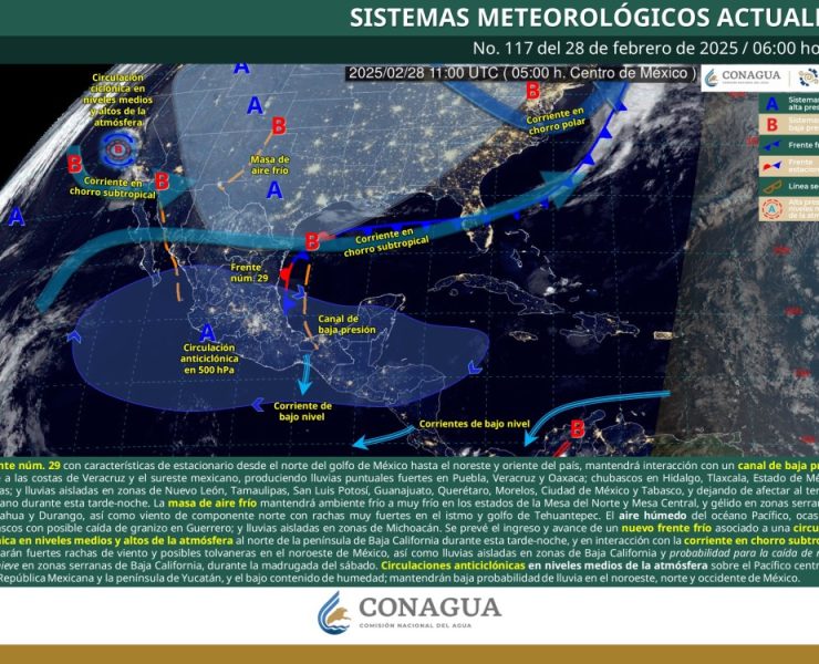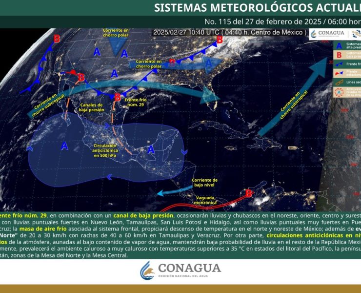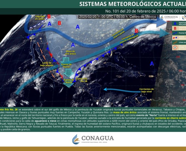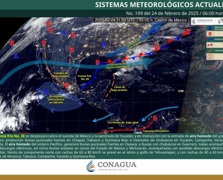 Este lunes 24 de febrero de 2025, el frente frío No. 28 avanza sobre el…