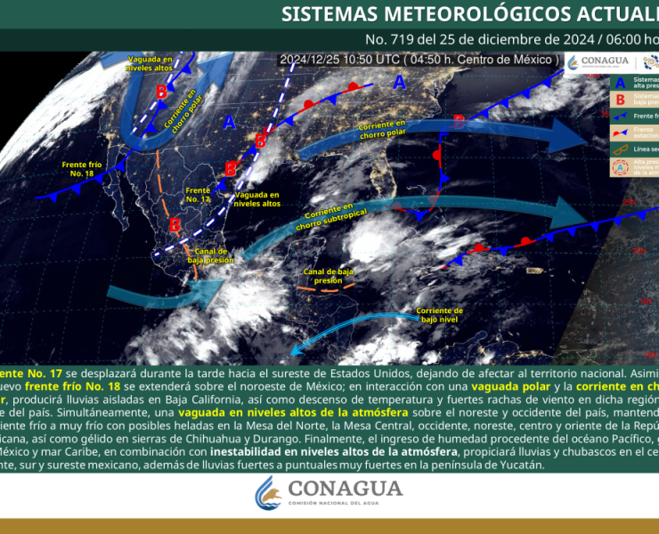 Mientras el frente frío número 17 abandona el territorio nacional para desplazarse hacia el sureste…