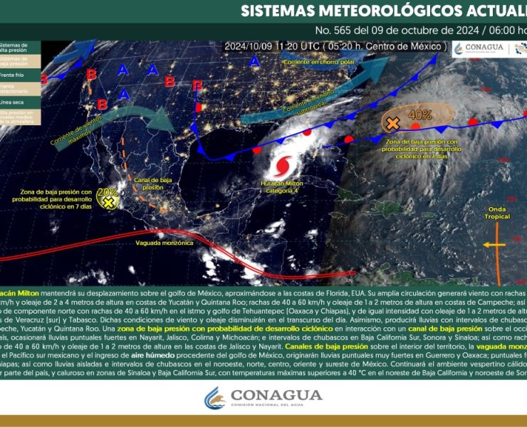 El Servicio Meteorológico Nacional (SMN), prevé que para hoy, el huracán Milton mantendrá su desplazamiento sobre…