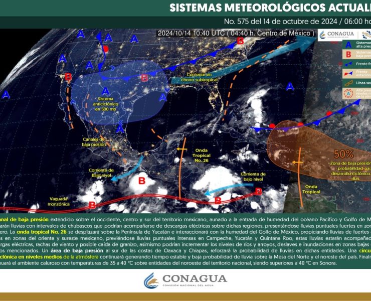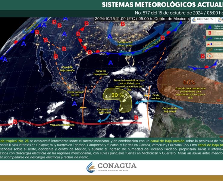 El Servicio Meteorológico Nacional (SMN), prevé que para hoy, la onda tropical No. 26 se desplazará…