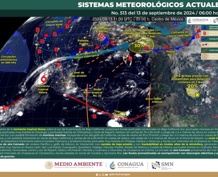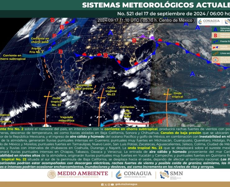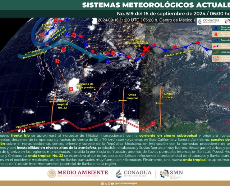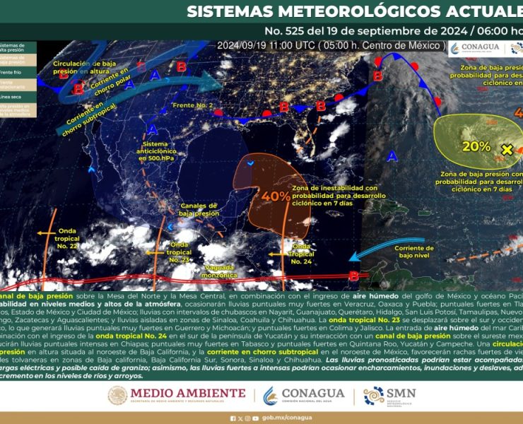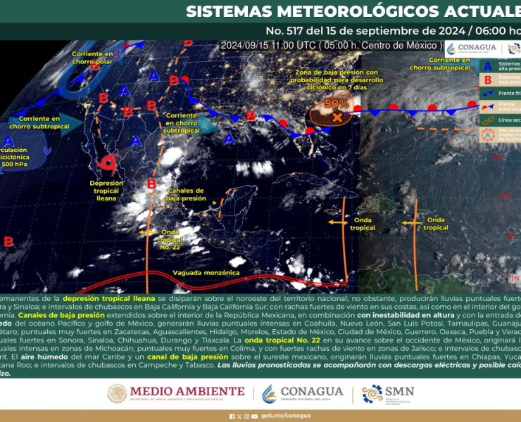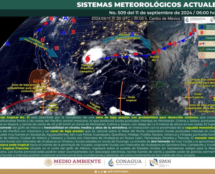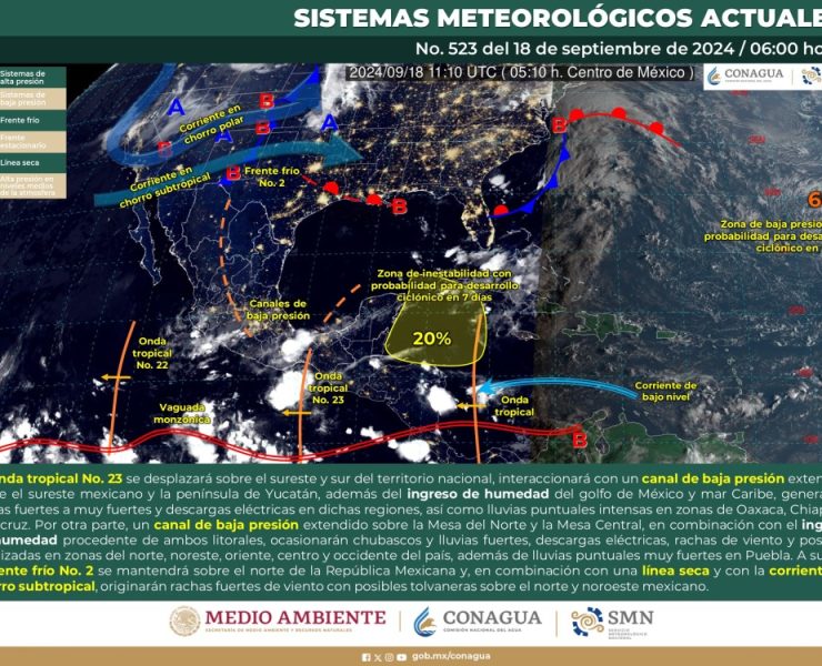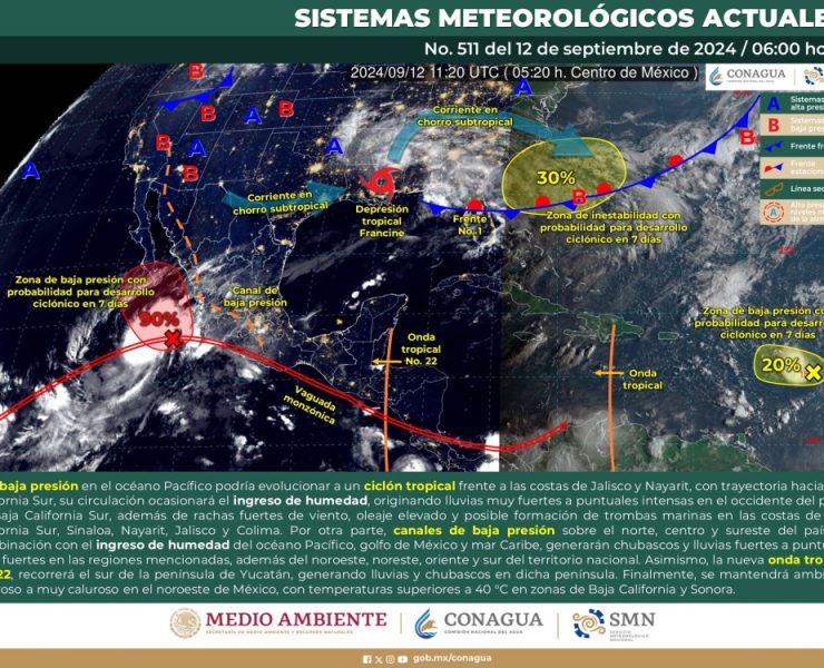 Servicio Meteorológico Nacional (SM), prevé que para este día, una baja presión en el océano Pacífico…