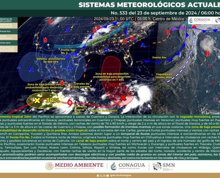 El Servicio Meteorológico Nacional (SMN), prevé que para hoy, la tormenta tropical John en el Pacífico…