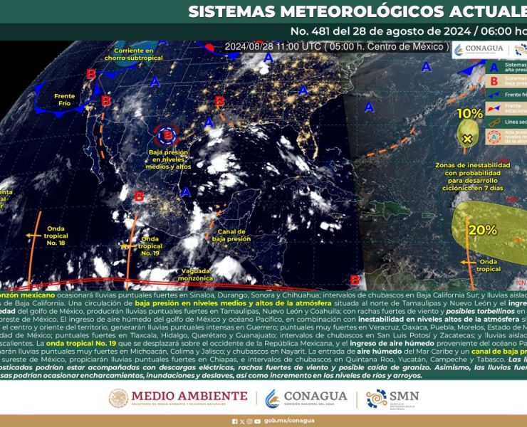 El Servicio Meteorológico Nacional (SMN), prevé que para hoy, el monzón mexicano en interacción con inestabilidad en…